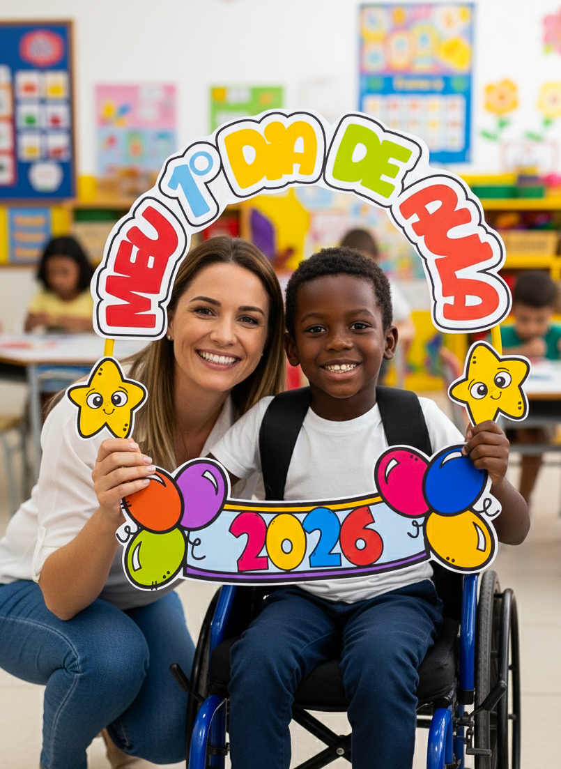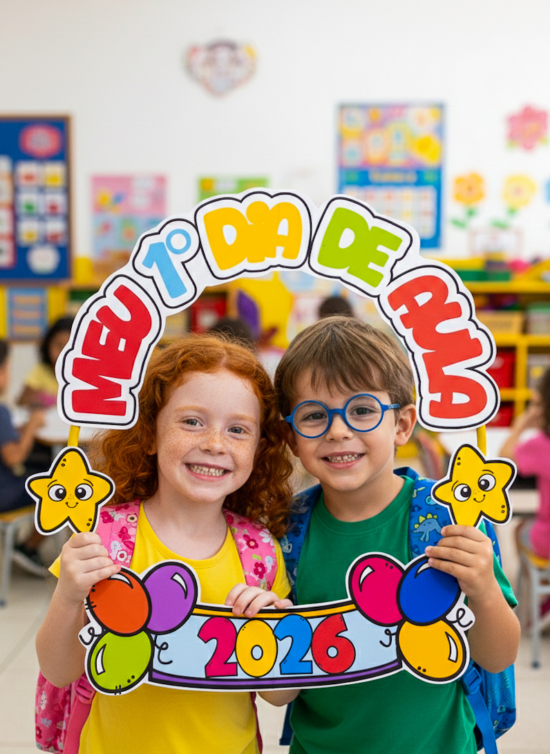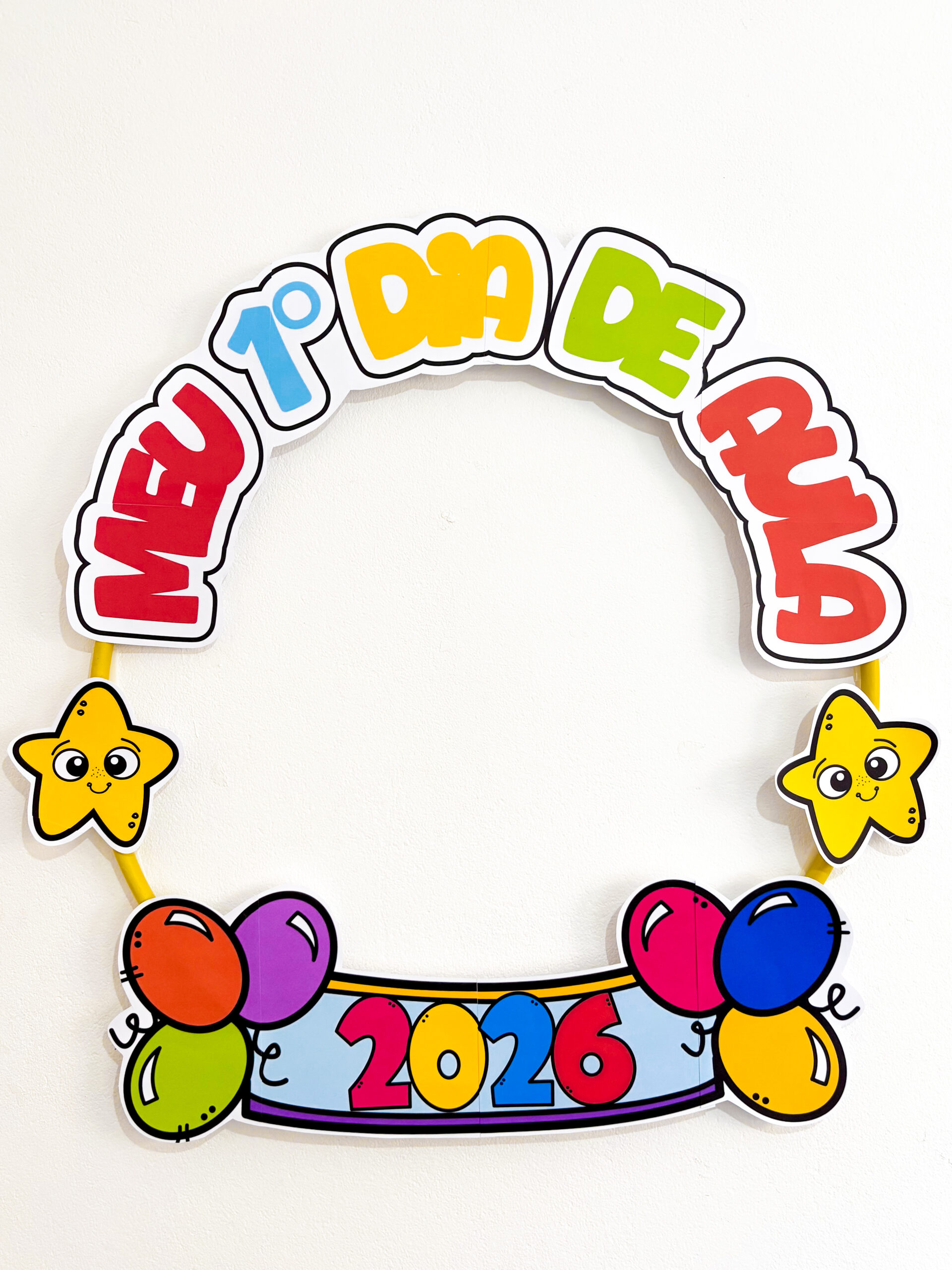 📸 Esse bambolê para fotos do primeiro dia de aula é perfeito pra registrar aquele sorriso tímido (ou empolgadíssimo!) da turma logo na chegada.