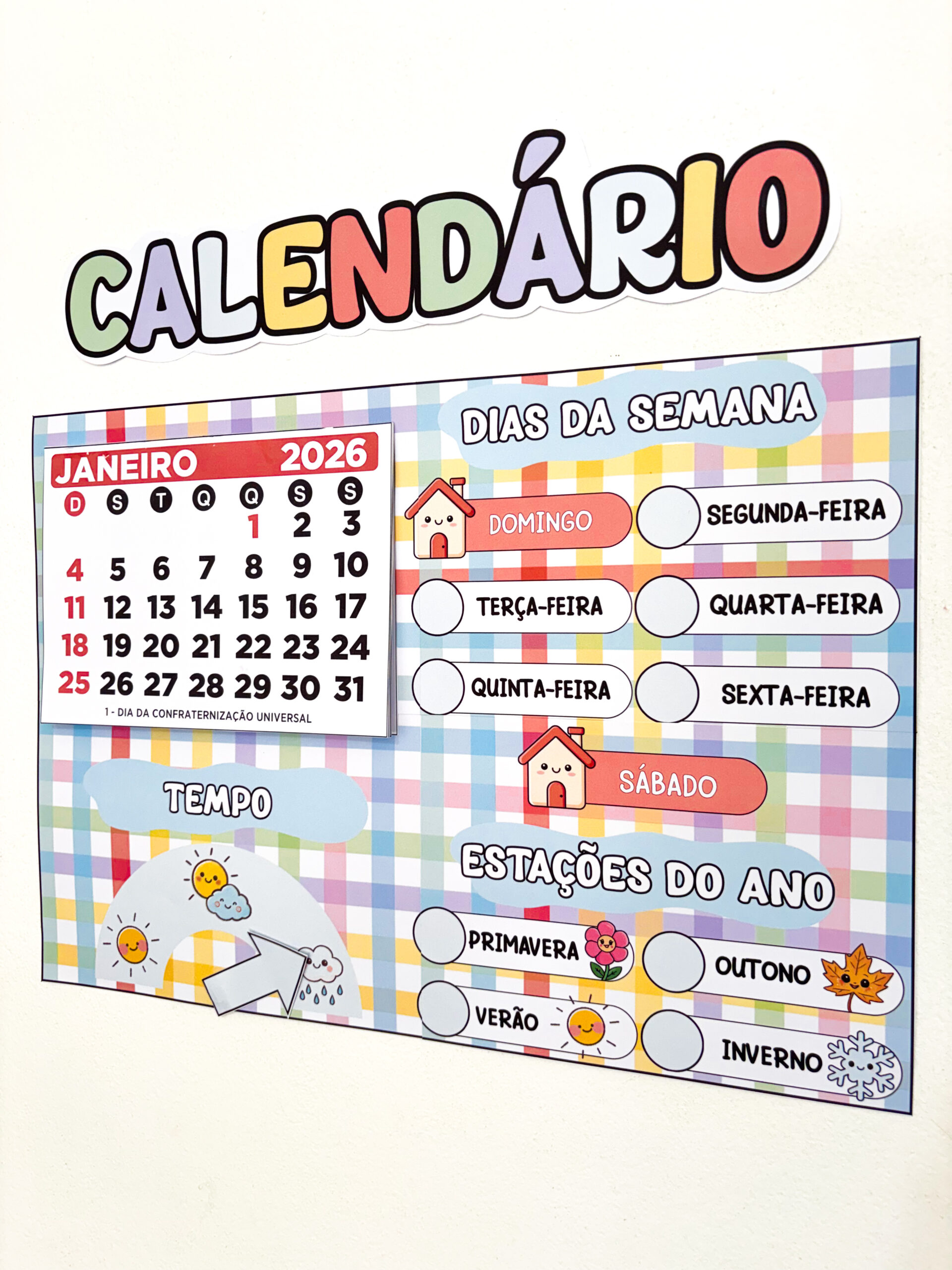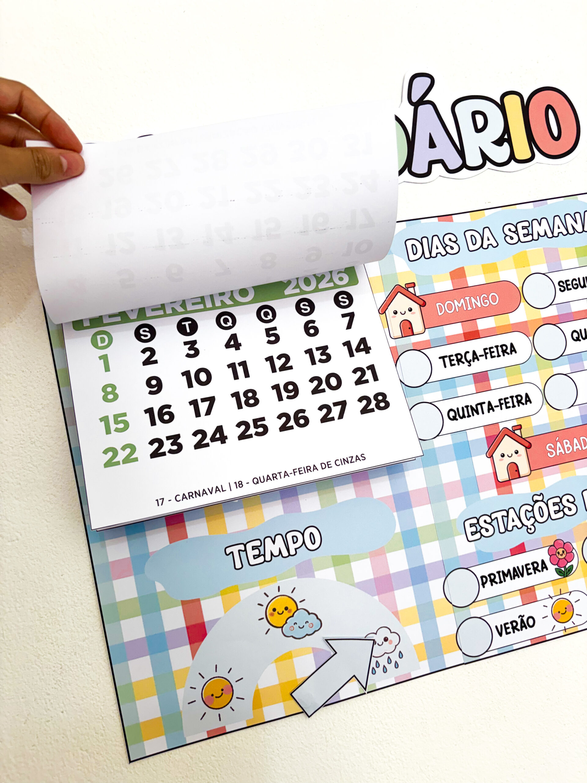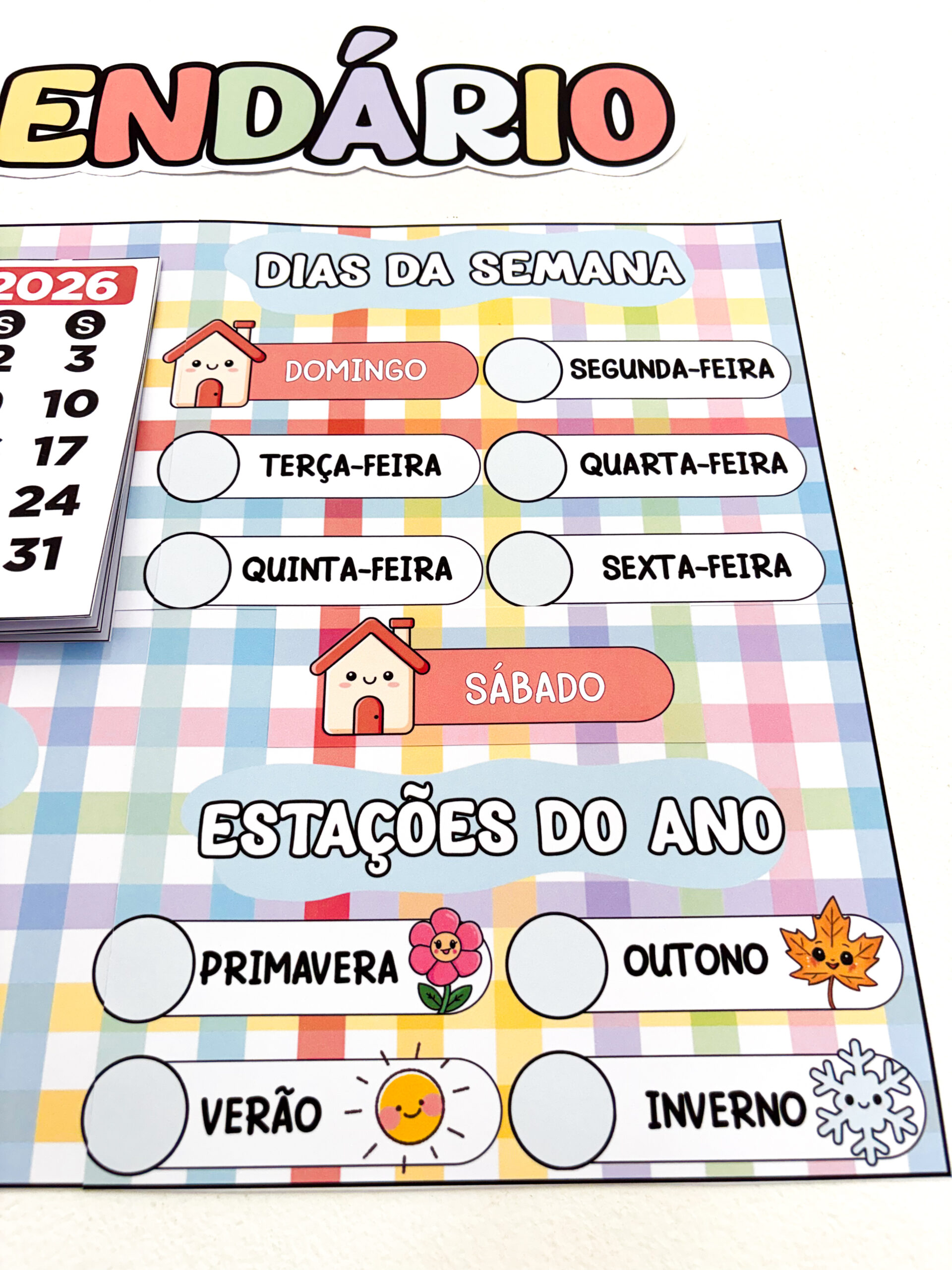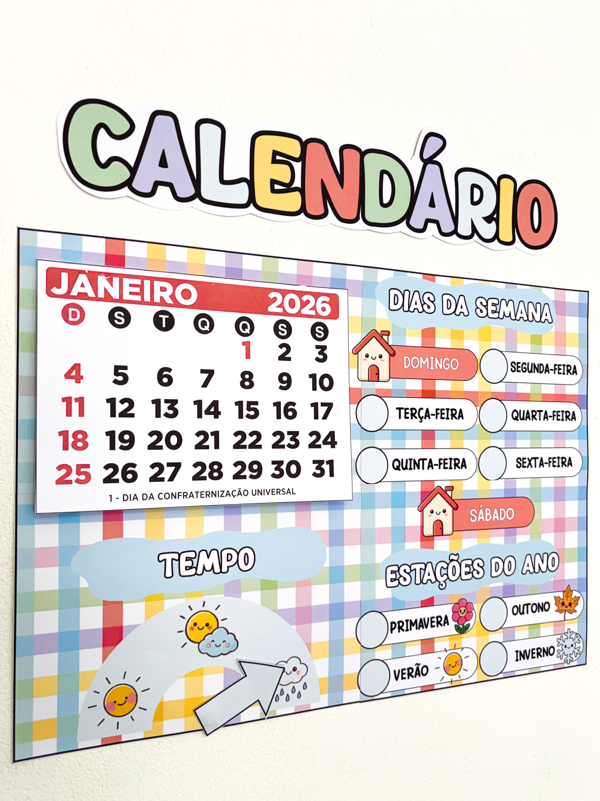 Mais do que marcar datas, este calendário transforma a rotina em aprendizagem significativa, ajudando as crianças a compreenderem o tempo, a organização e a sequência dos dias 🧠