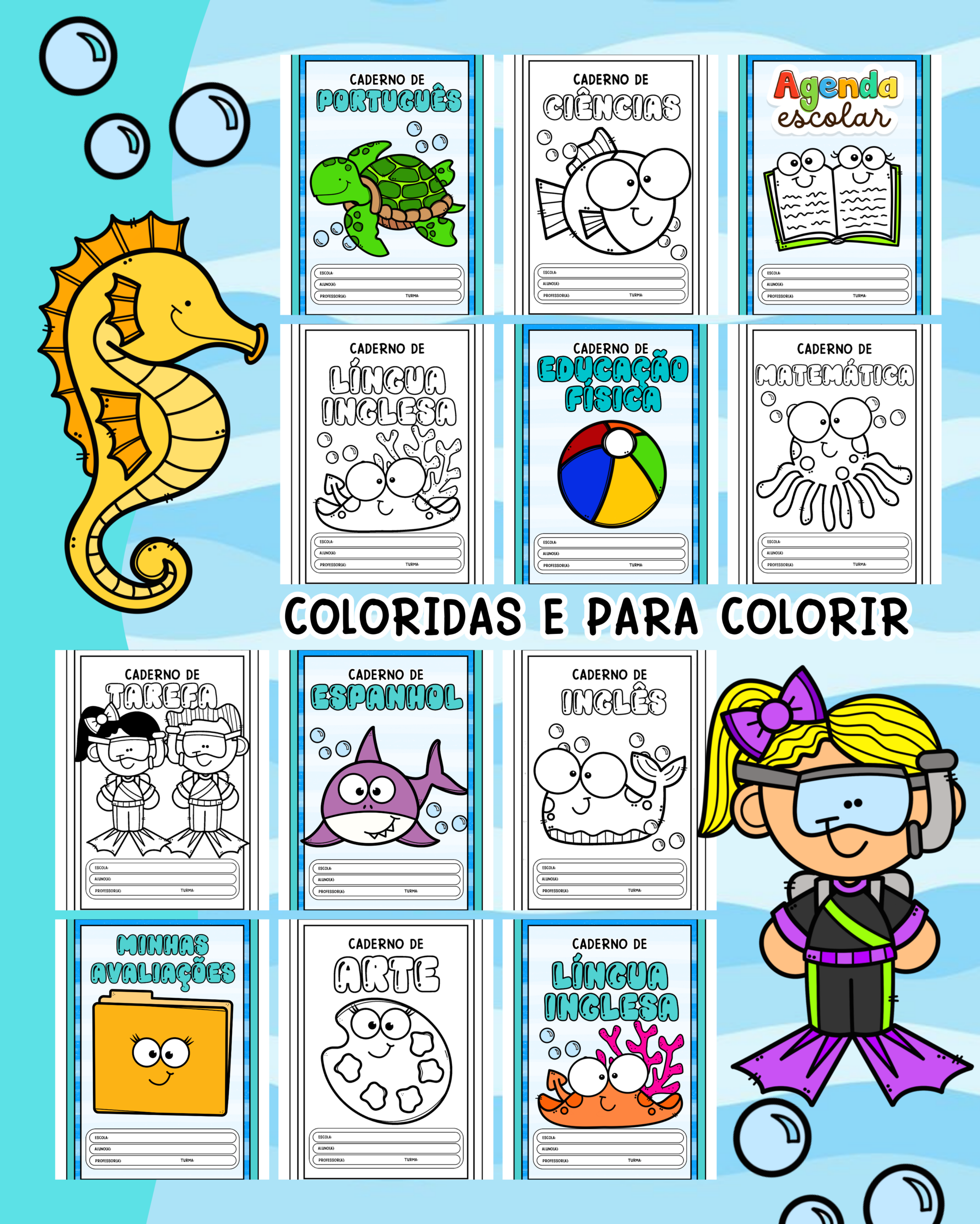 Capinhas de caderno – Fundo do Mar